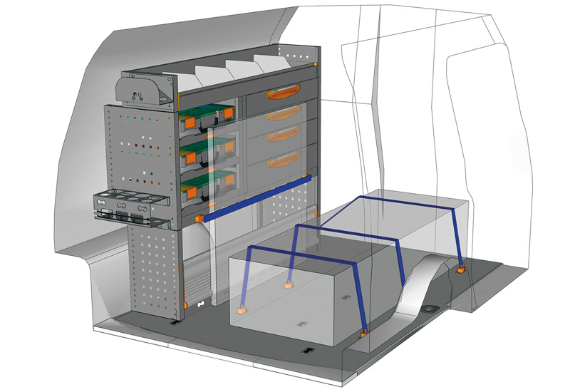 Przykłady regałów modułowych Professional do Caddy L1 H1