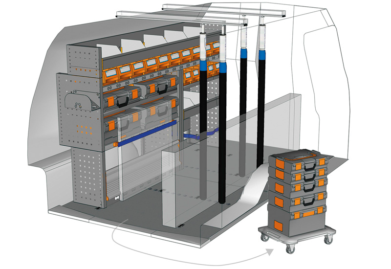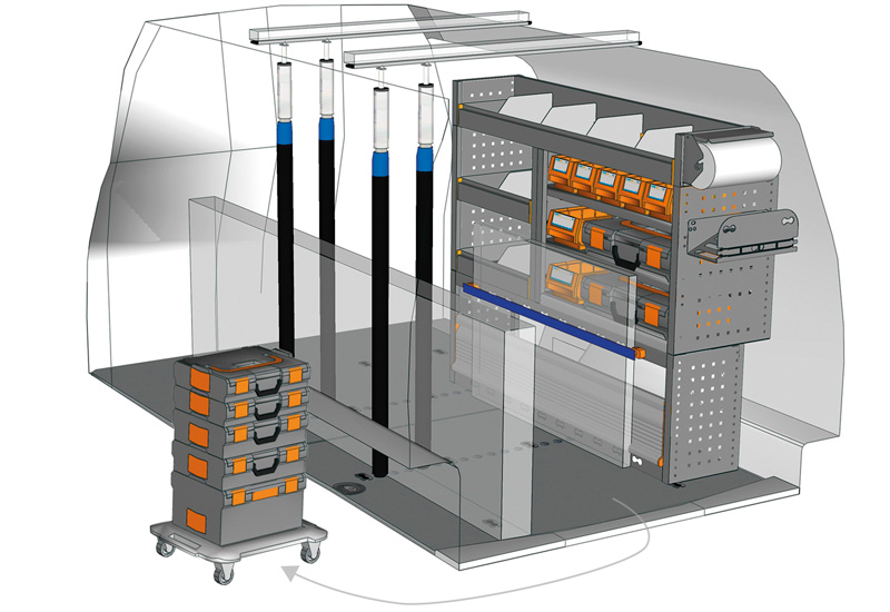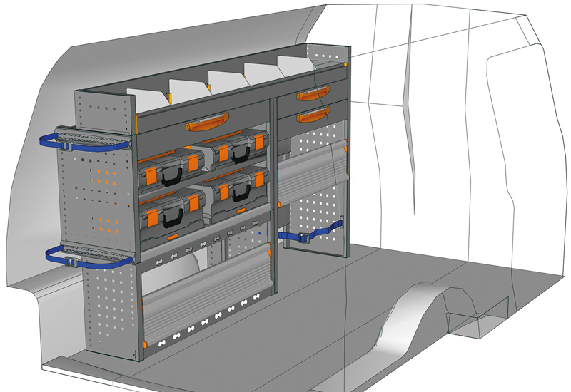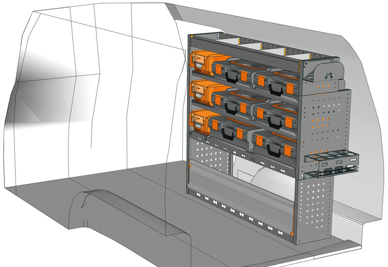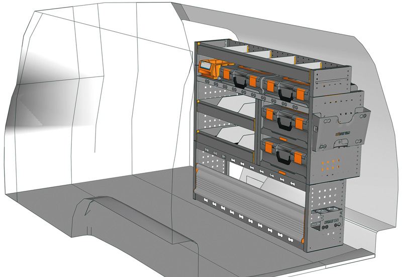 Przykłady regałów do samochodów dostawczych Mobile, do Caddy L2 H1 Maxi