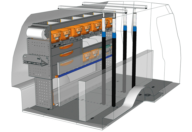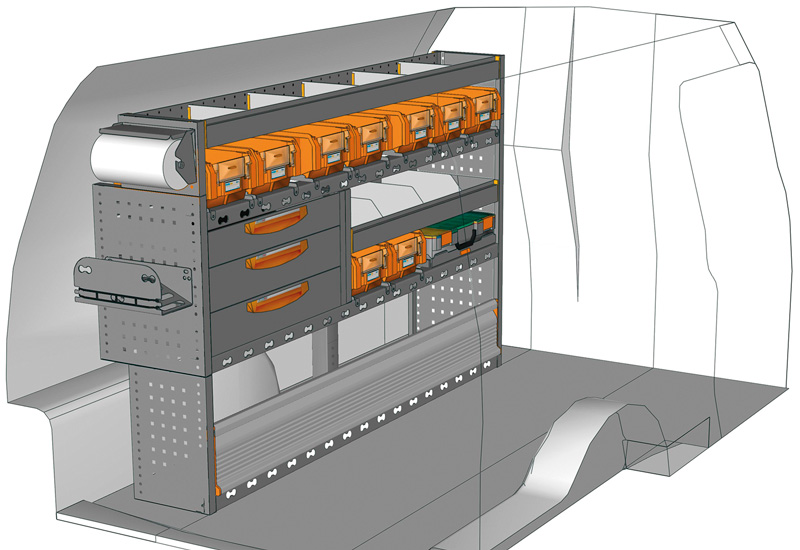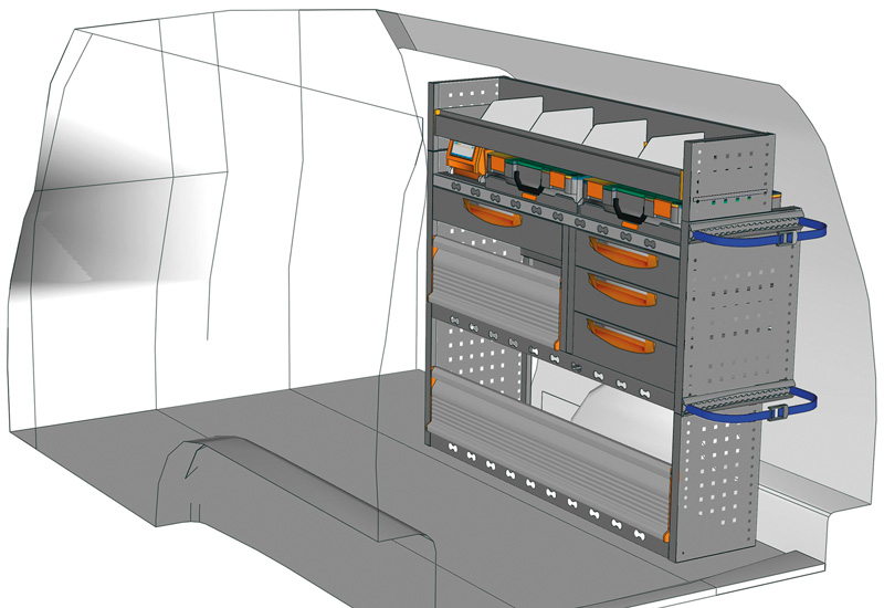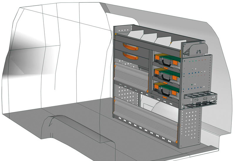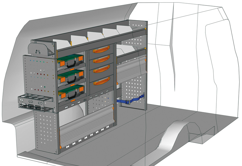 Przykłady regałów modułowych Professional do Caddy L2 H1 Maxi