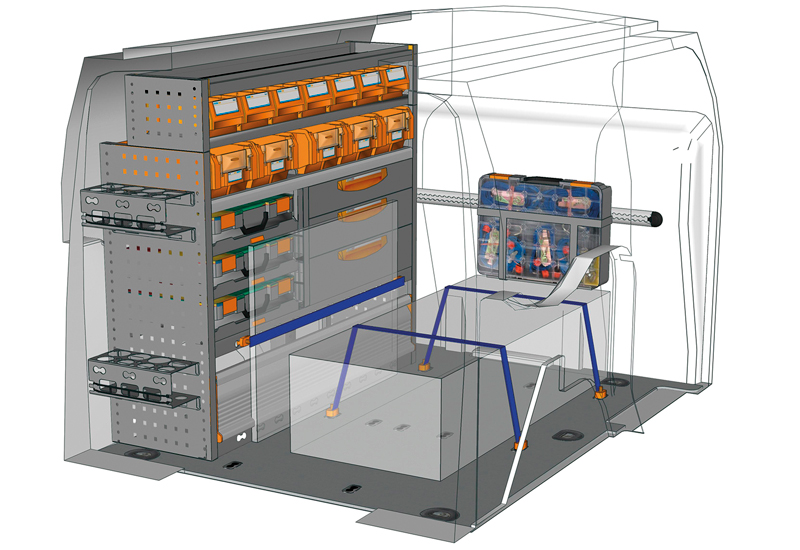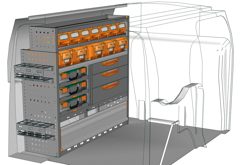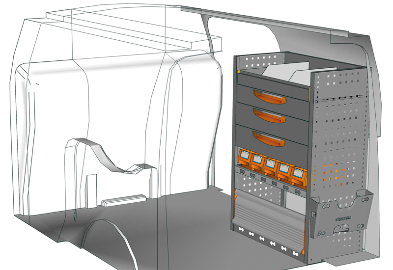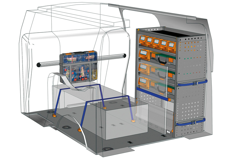 Przykłady regałów do samochodów dostawczych Professional, do Transit Connect L1 H1