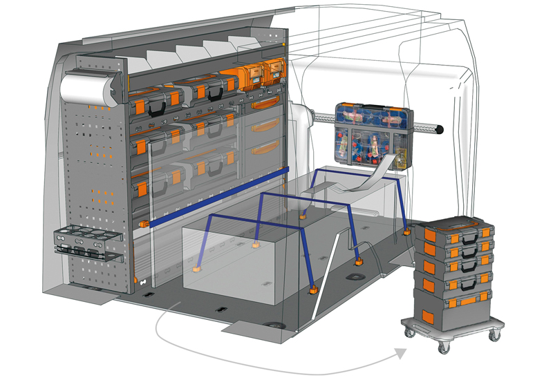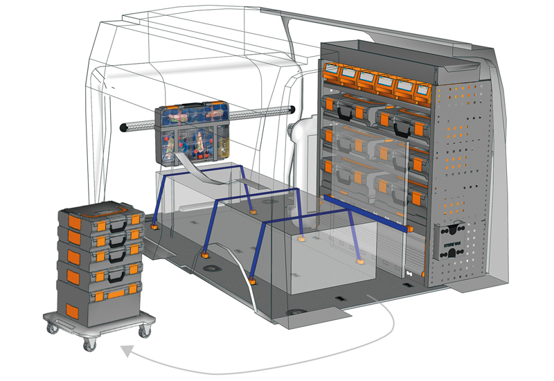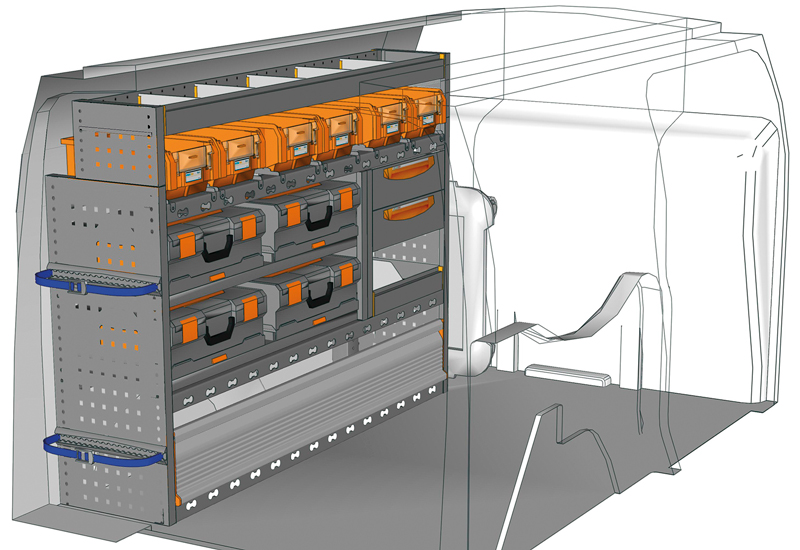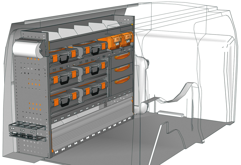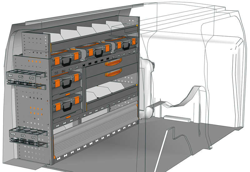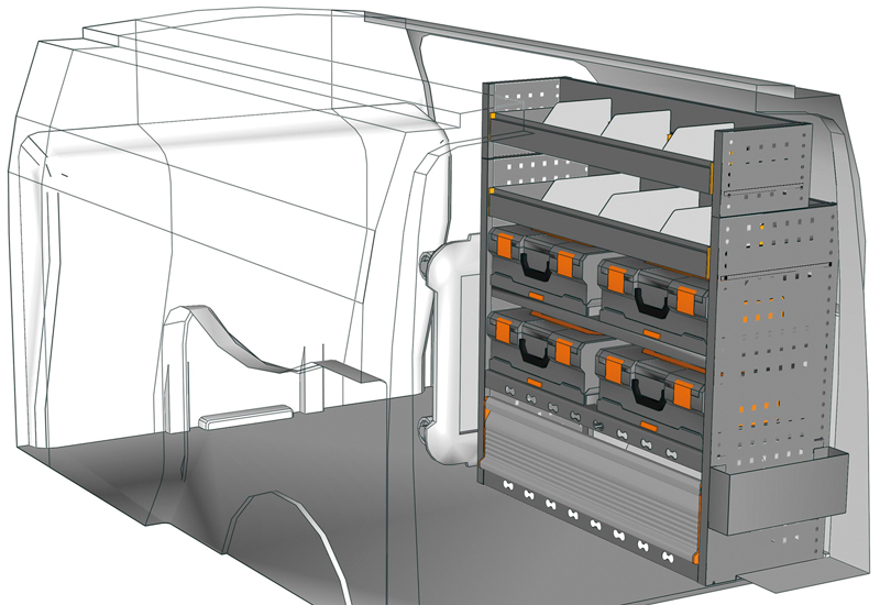 Przykłady regałów do samochodów dostawczych Mobile, do Transit Connect L2 H1