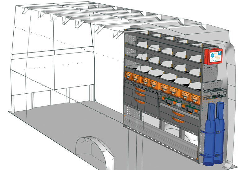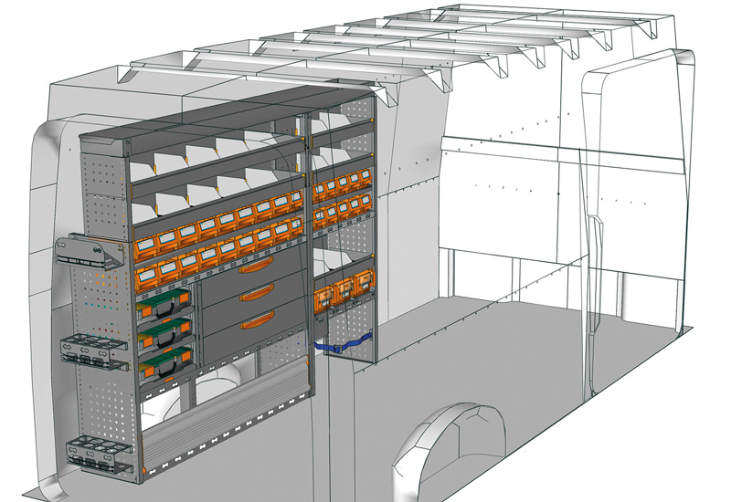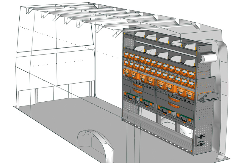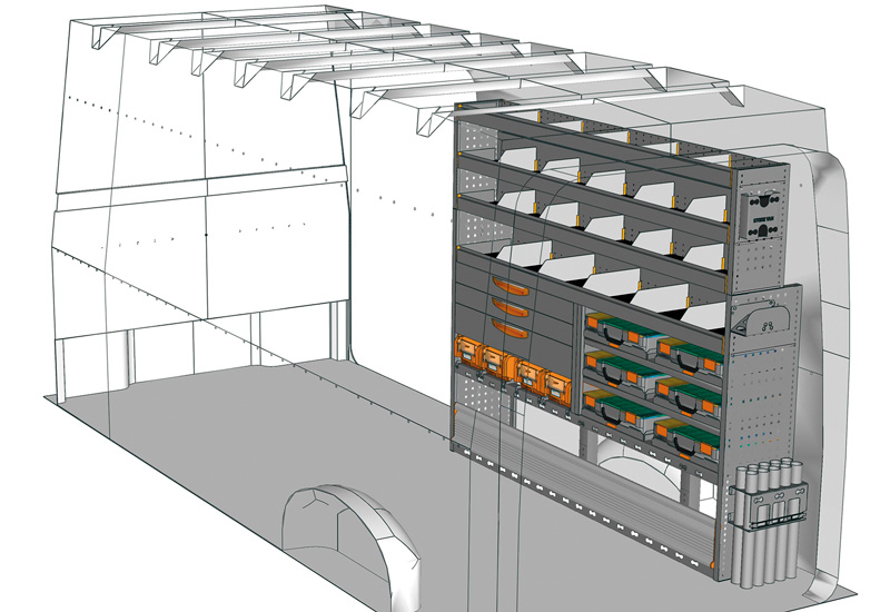 Przykłady regałów do samochodów dostawczych Professional, do CRAFTER L4 H3