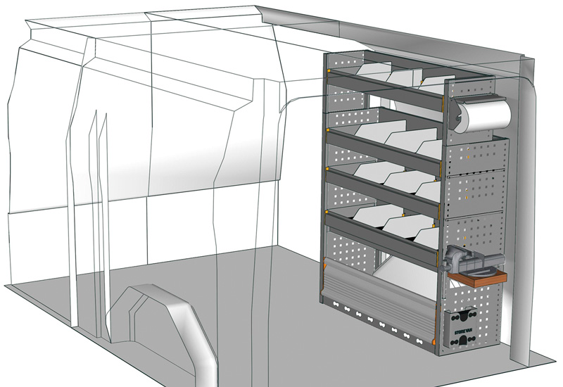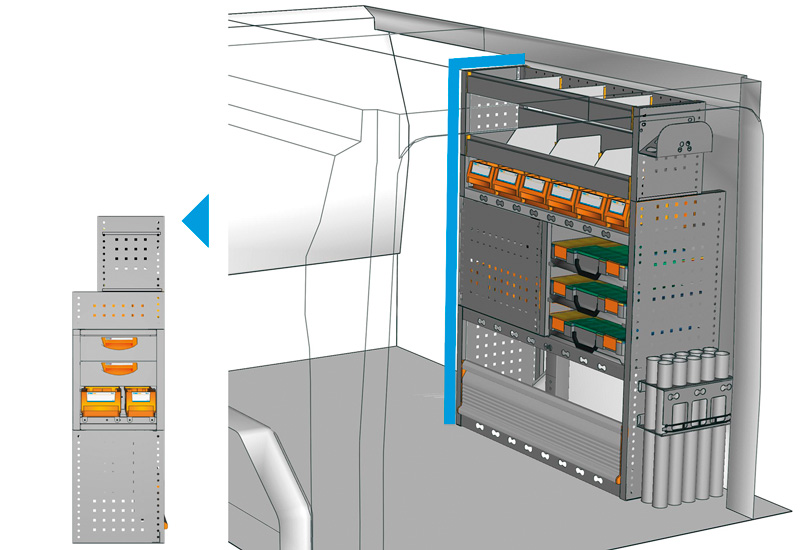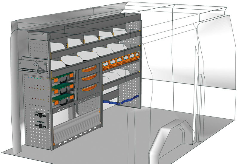 Wyposazanie samochodow dostawczych do Custom L1 H1. Przedstawiamy tutaj przykłady wyposażenia do samochodów dostawczych Ford Custom (Rozstaw osi 2933 mm).