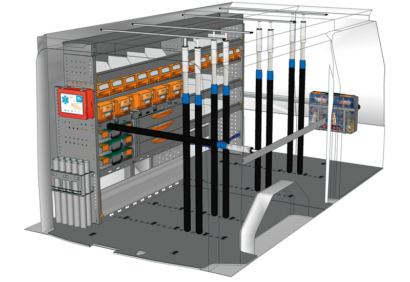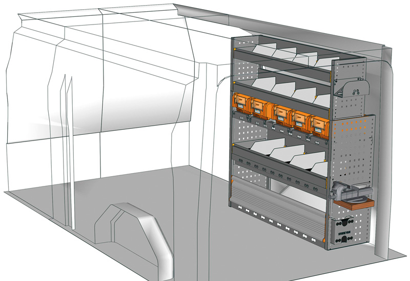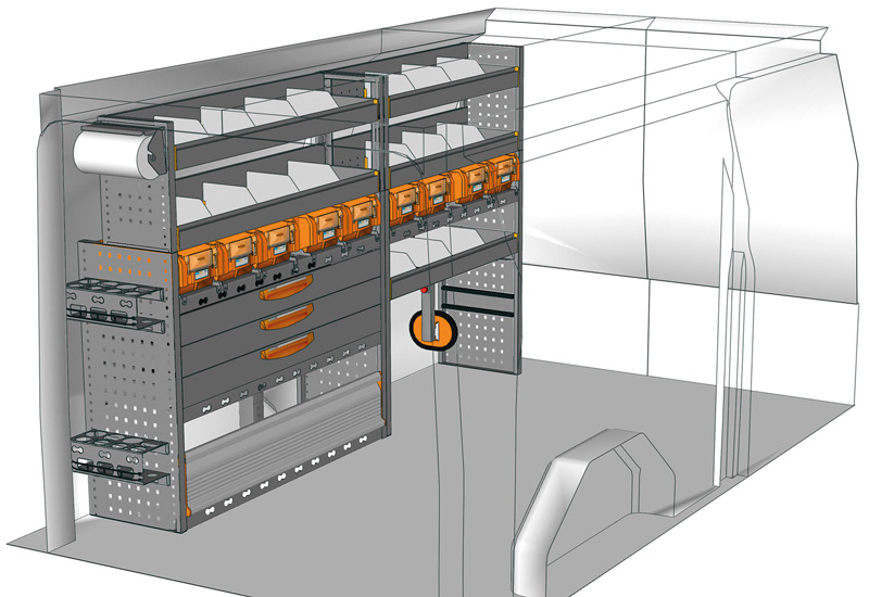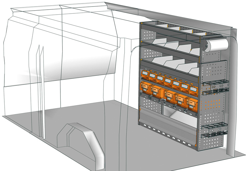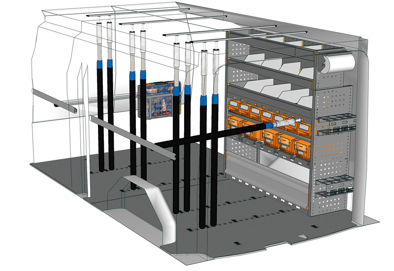 Przykłady regałów do samochodów dostawczych Professional, do Custom L2 H1