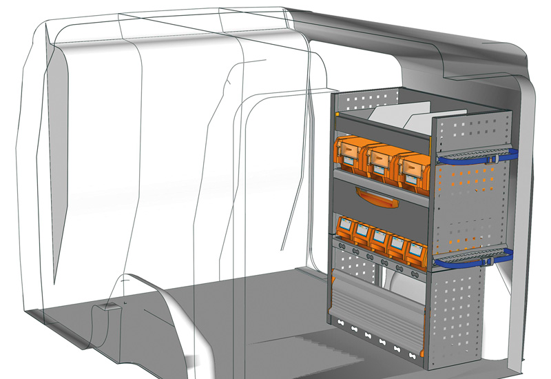 Przykłady regałów modułowych Professional do Doblò L1 H1