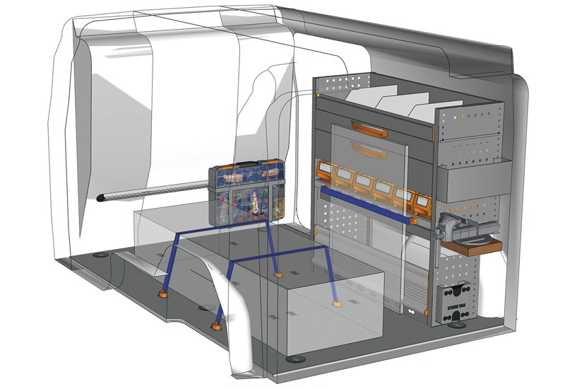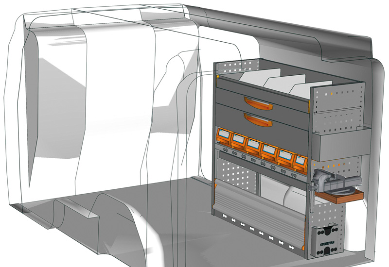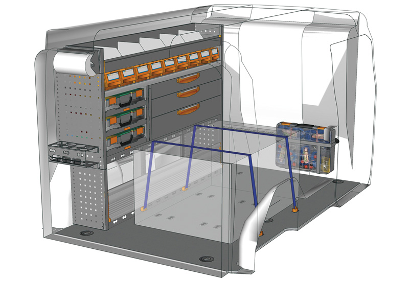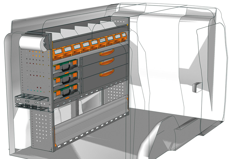 Przykłady regałów modułowych Professional do Doblò L2 H1