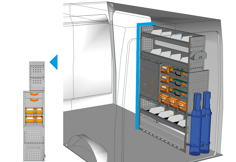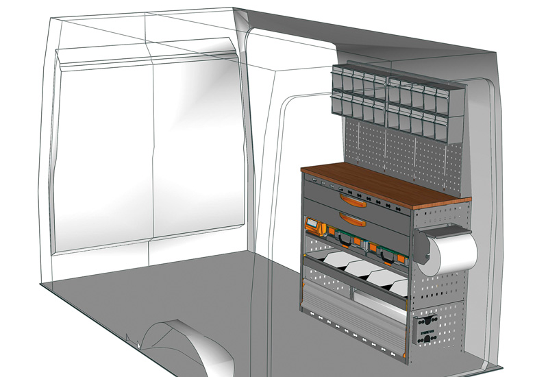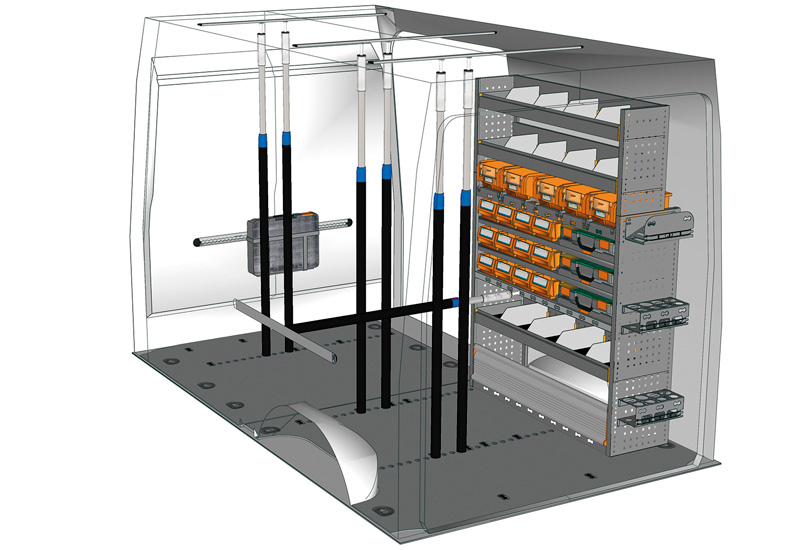 Przykłady regałów do samochodów dostawczych Professional, do H350 L2 H2