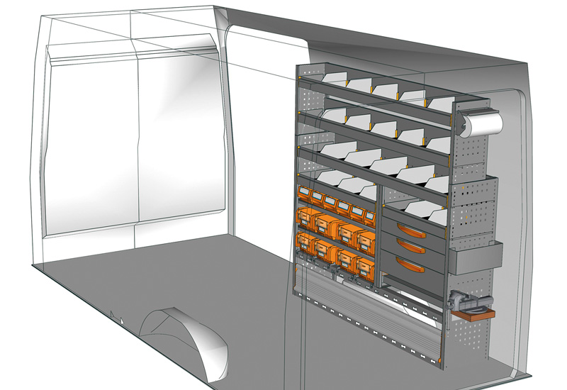 Wyposazanie samochodow dostawczych do H350 L3 H2. Przedstawiamy tutaj przykłady wyposażenia do samochodów dostawczych H350 (Rozstaw osi 3670 mm)