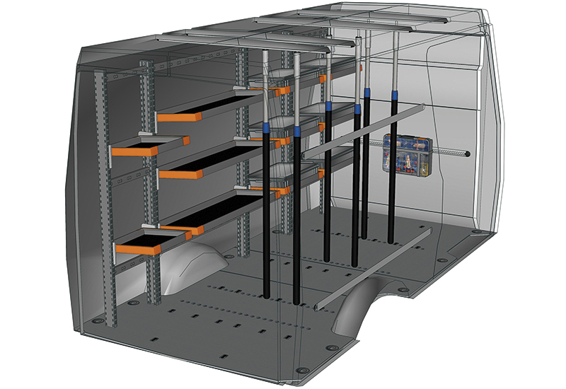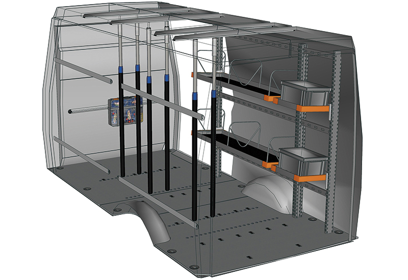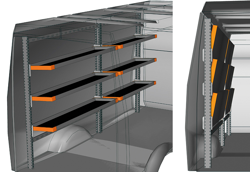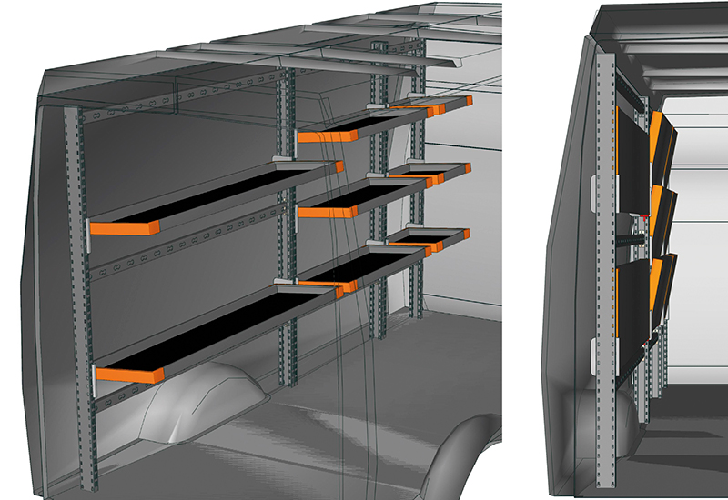 Przykłady ustawienia Light Shelf z składane półki do samochodów dostawczych Daily L2L H2 / 3520L H2. Przedstawiamy tutaj przykłady wyposażenia do samochodów dostawczych Iveco Daily 2014 (Rozstaw osi 3520 mm)