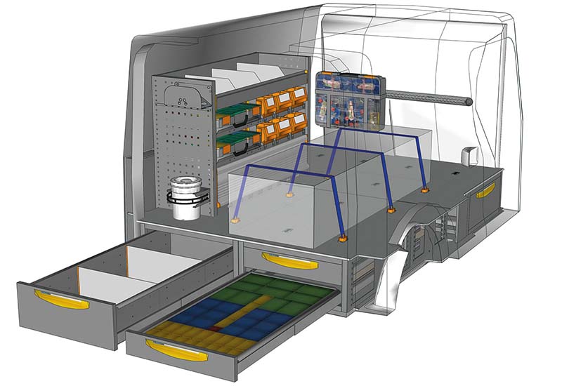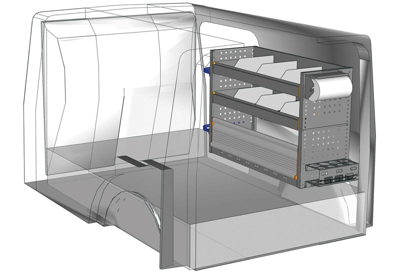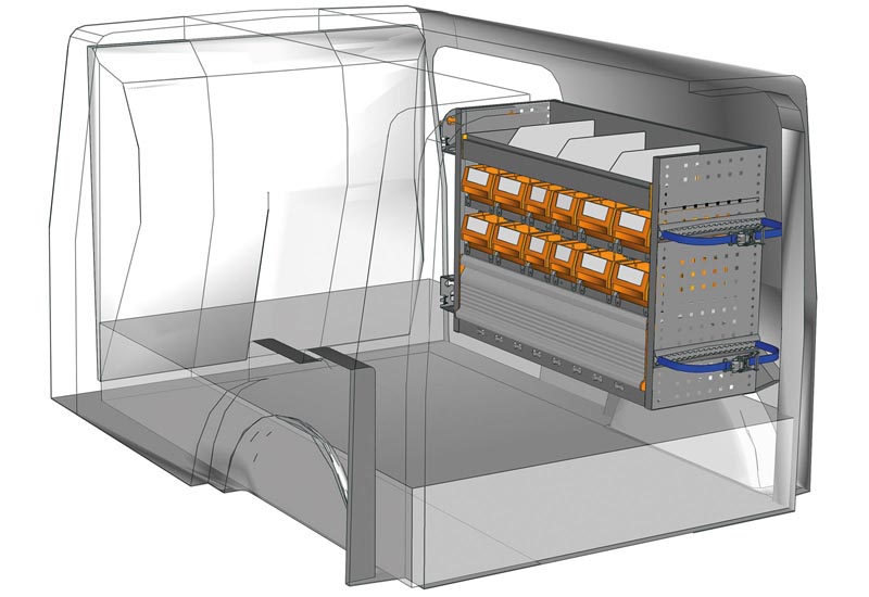 Przykłady regałów do samochodów dostawczych Floor UP Kangoo L2 H1 – h. 250 mm