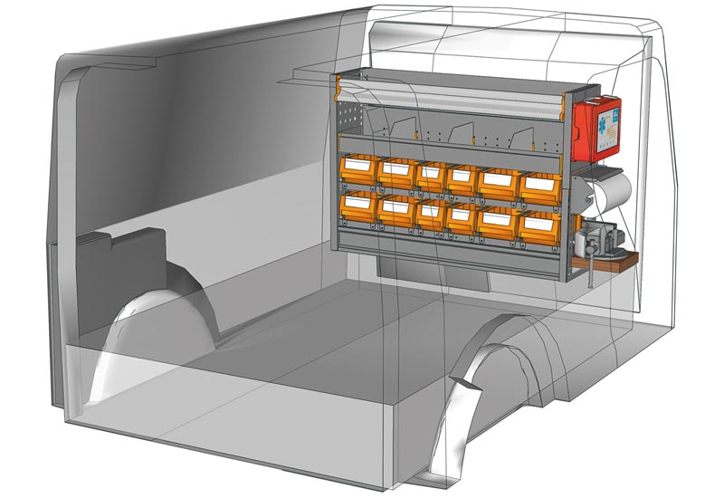 Wyposażenie samochodów dostawczych per furgoni Kangoo L2 H1. Przedstawiamy tutaj przykłady wyposażenia do samochodów dostawczych Renault Kangoo 2013 (Rozstaw osi 3081 mm)