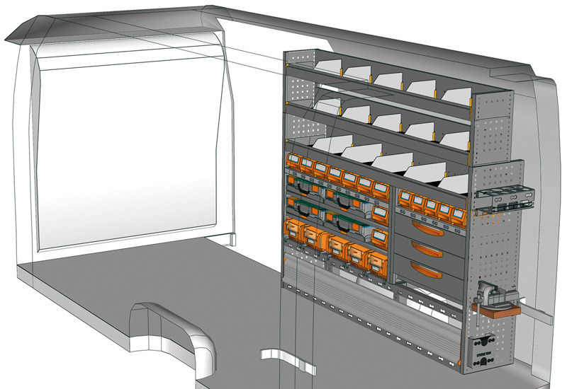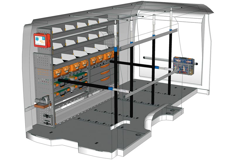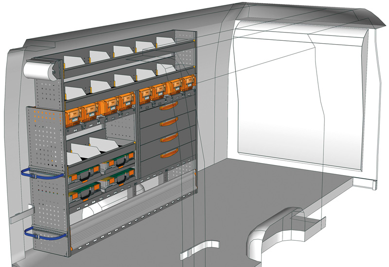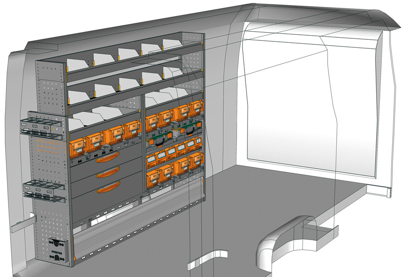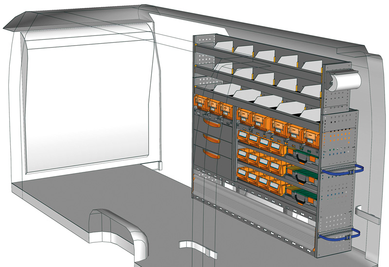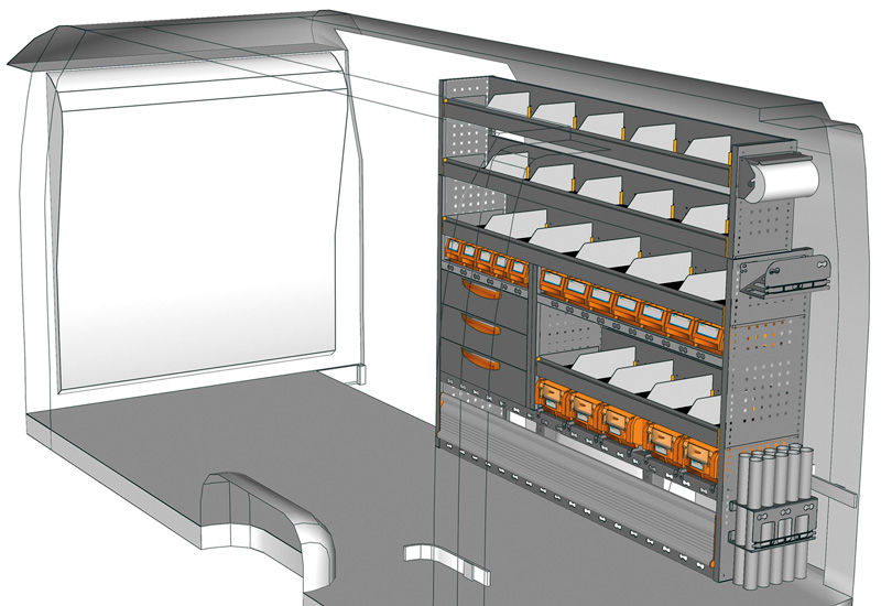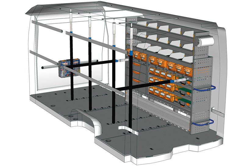 Przykłady regałów do samochodów dostawczych Professional, do MOVANO L3 H2 Napęd na tył
