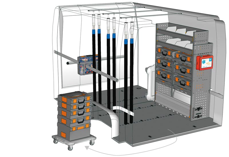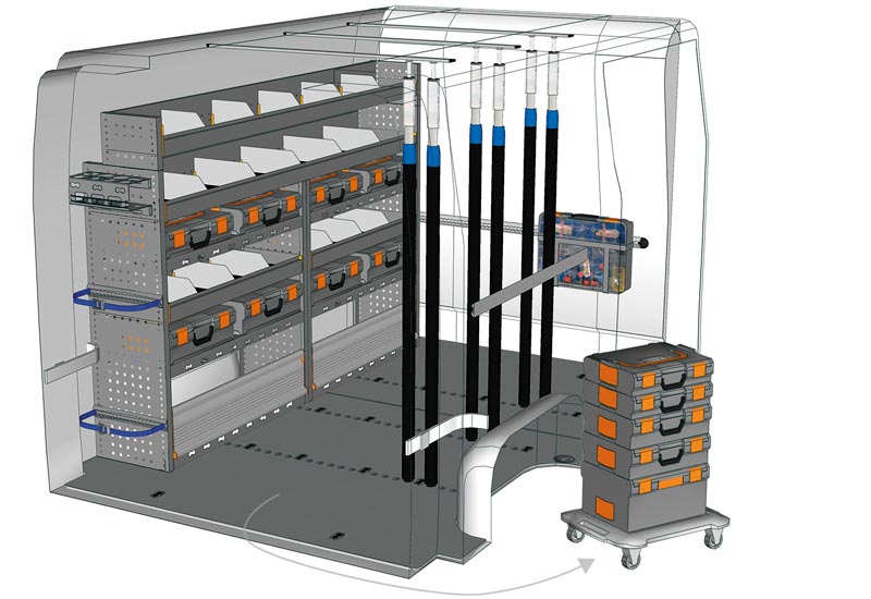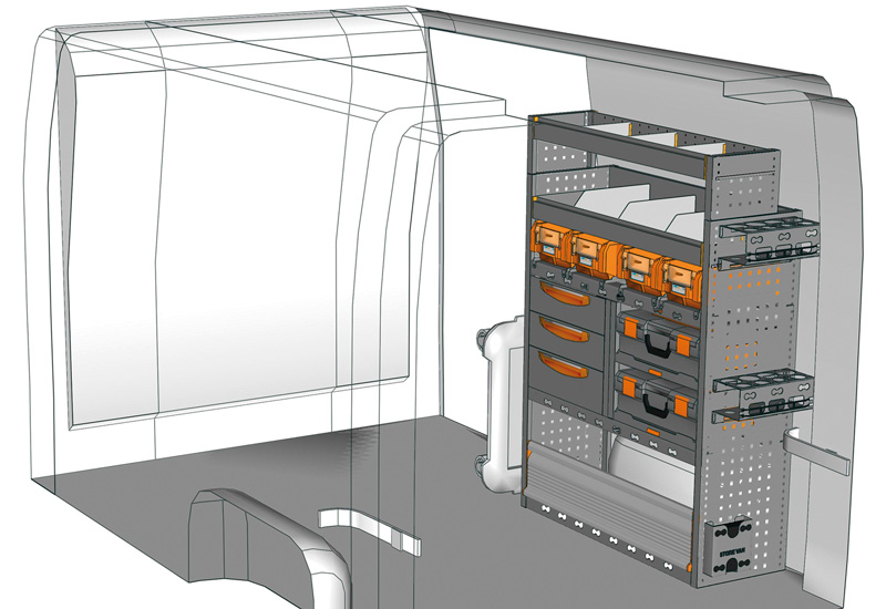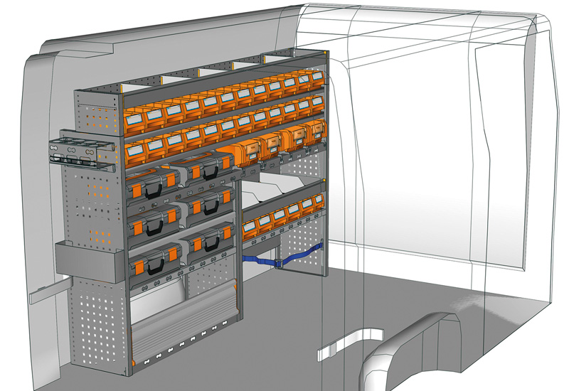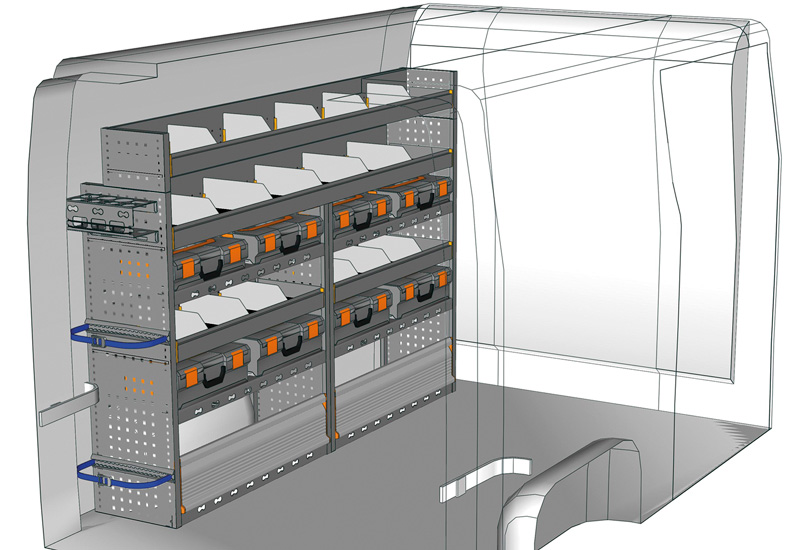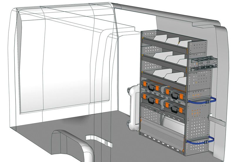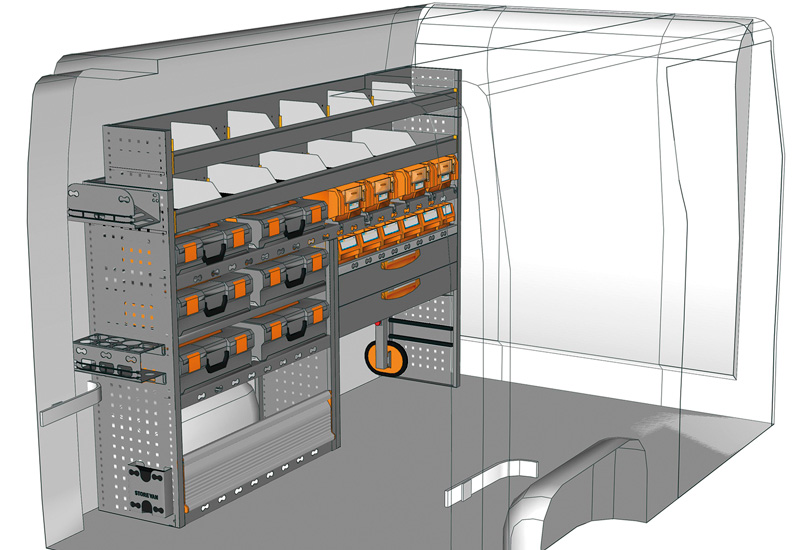 Przykłady regałów do samochodów dostawczych Mobile, do NV400 / Interstar L1 H1