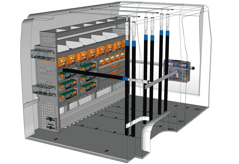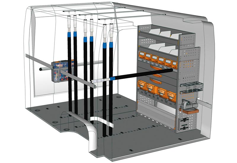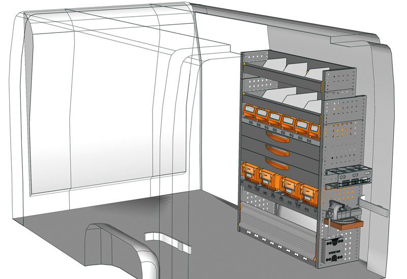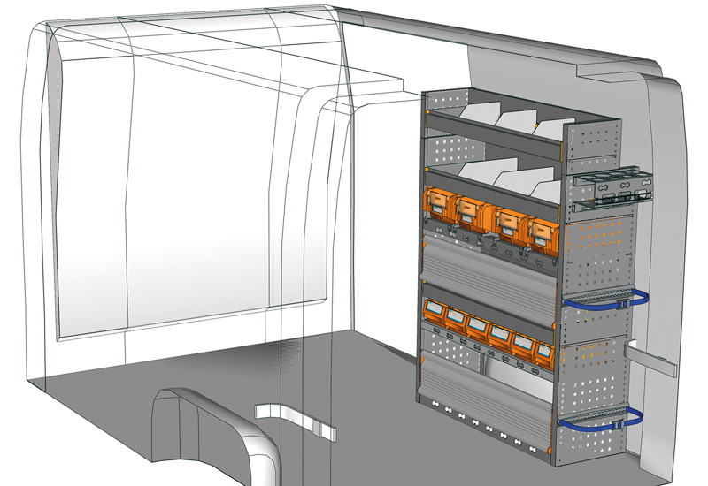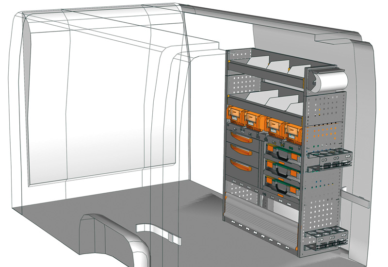 Przykłady regałów do samochodów dostawczych Professional, do NV400 / Interstar L1 H1