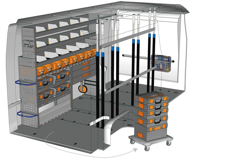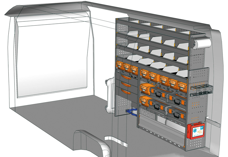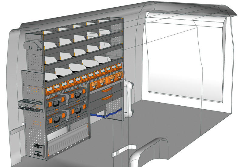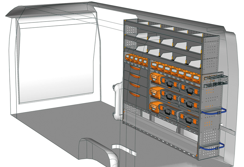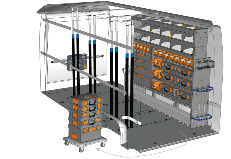 Przykłady regałów do samochodów dostawczych Mobile, do NV400 / Interstar L3 H2 – Napęd na przód