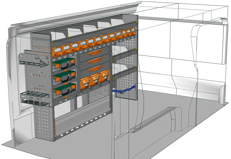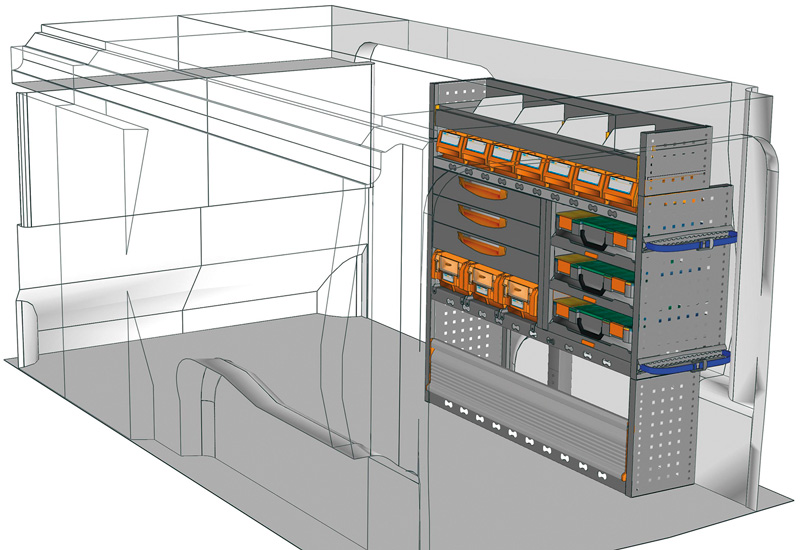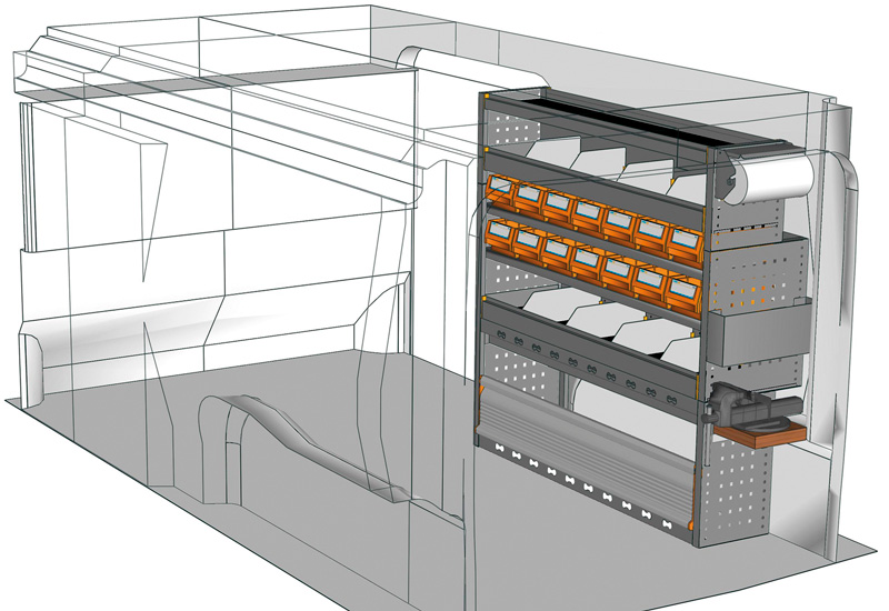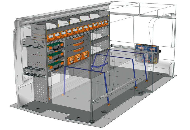 Przykłady regałów do samochodów dostawczych Professional, do Proace long (L2)
