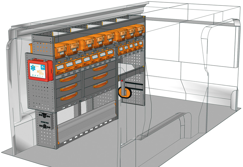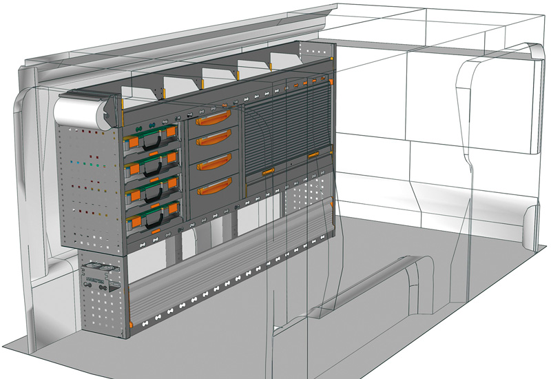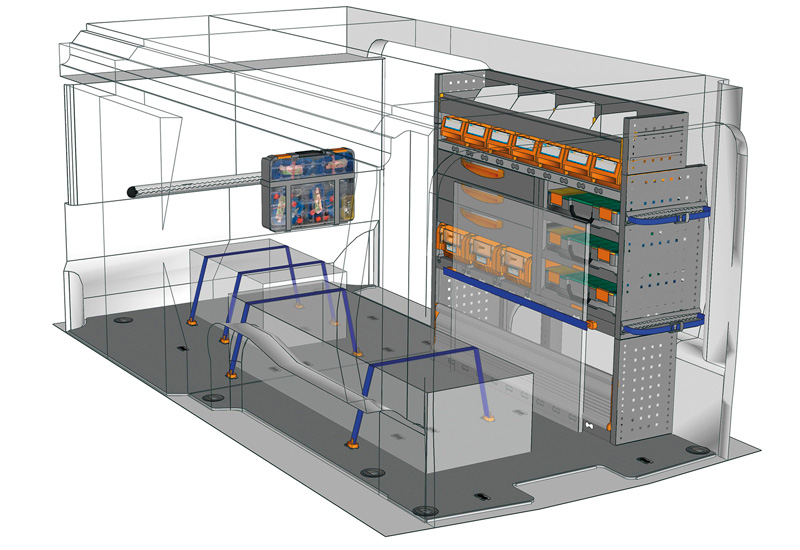 Wyposazanie samochodow dostawczych do Proace long (L2). Przedstawiamy tutaj przykłady wyposażenia do samochodów dostawczych Toyota Proace (Rozstaw osi 3275 mm).