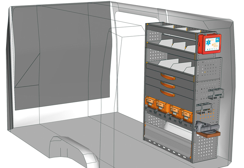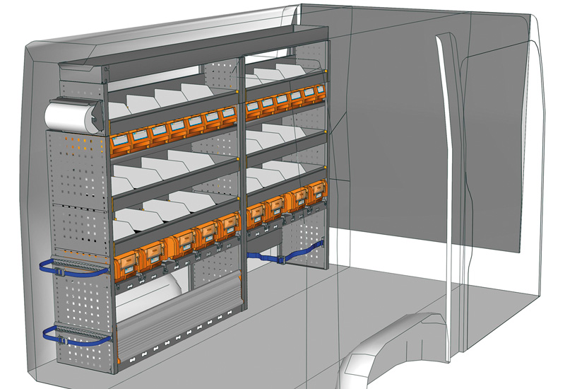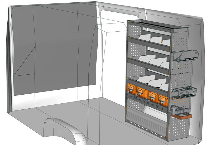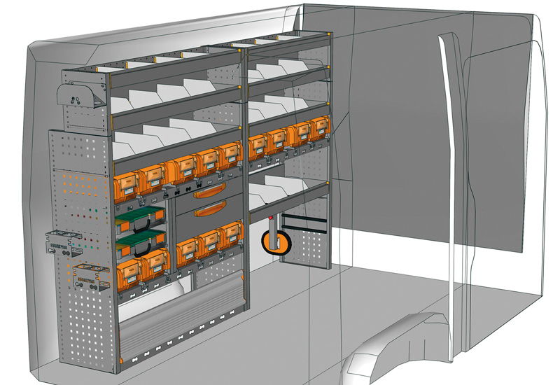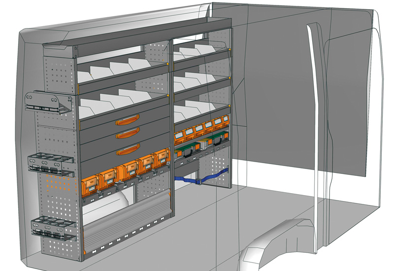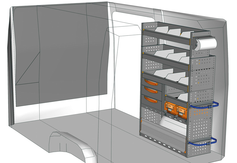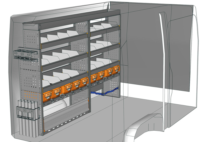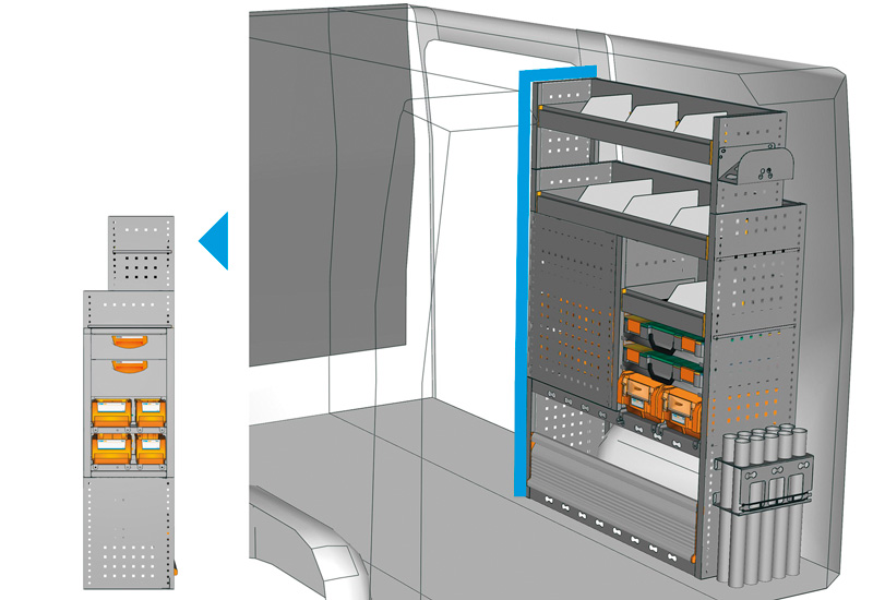 Wyposażenie samochodów dostawczych do Sprinter Kompaktowa, Dach normalny. Przedstawiamy tutaj przykłady wyposażenia do samochodów dostawczych Mercedes-Benz Sprinter (Rozstaw osi 3250 / 3259 mm).