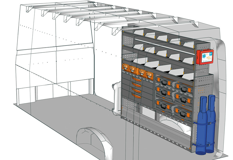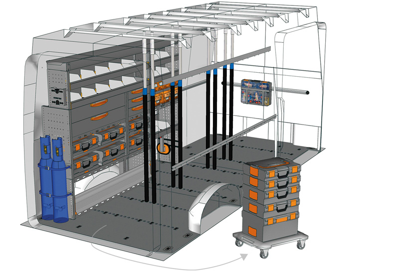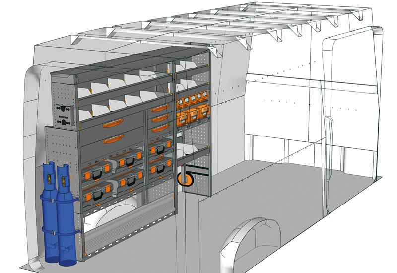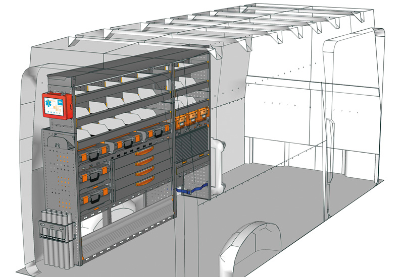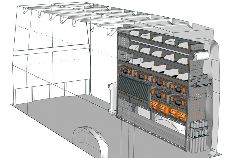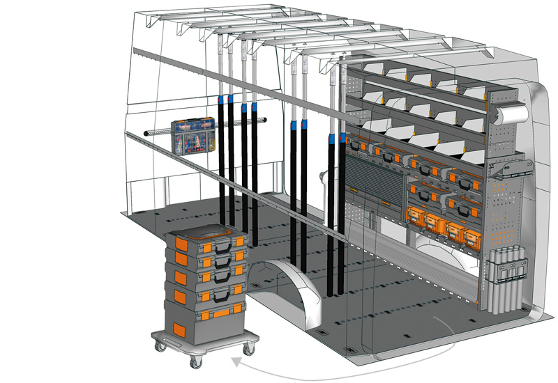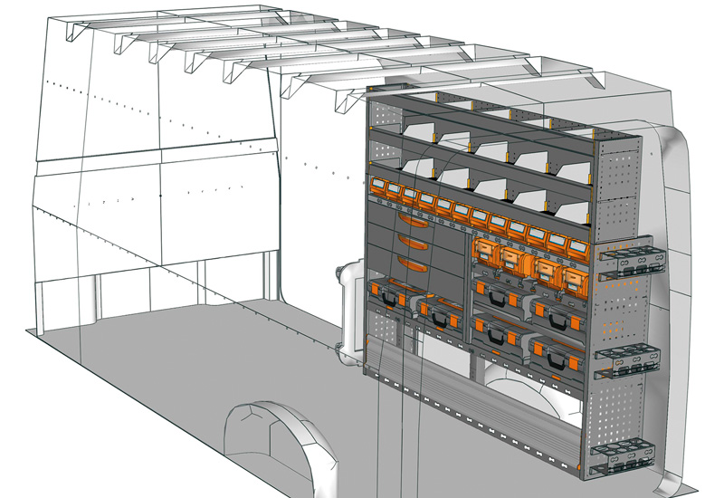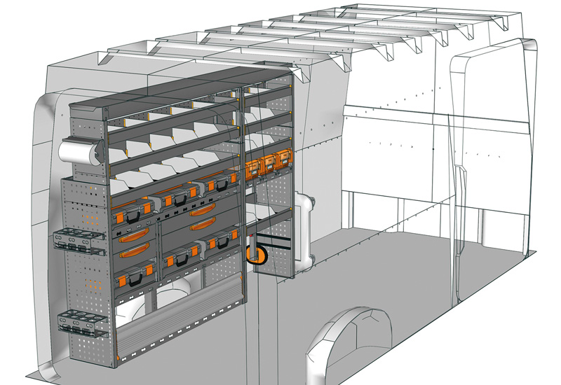 Przykłady regałów do samochodów dostawczych Mobile, do TGE Długi, Dach wysoki