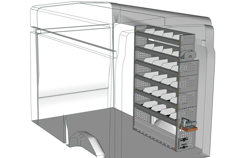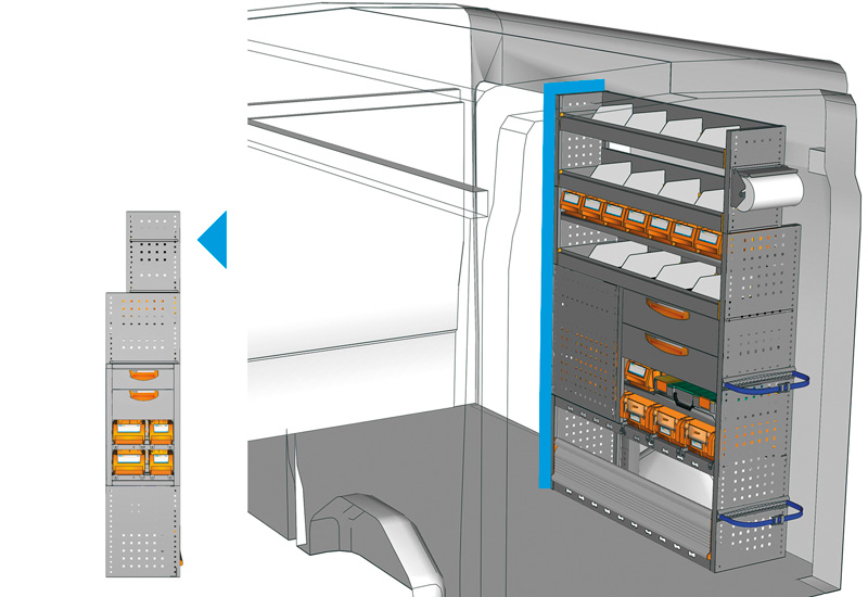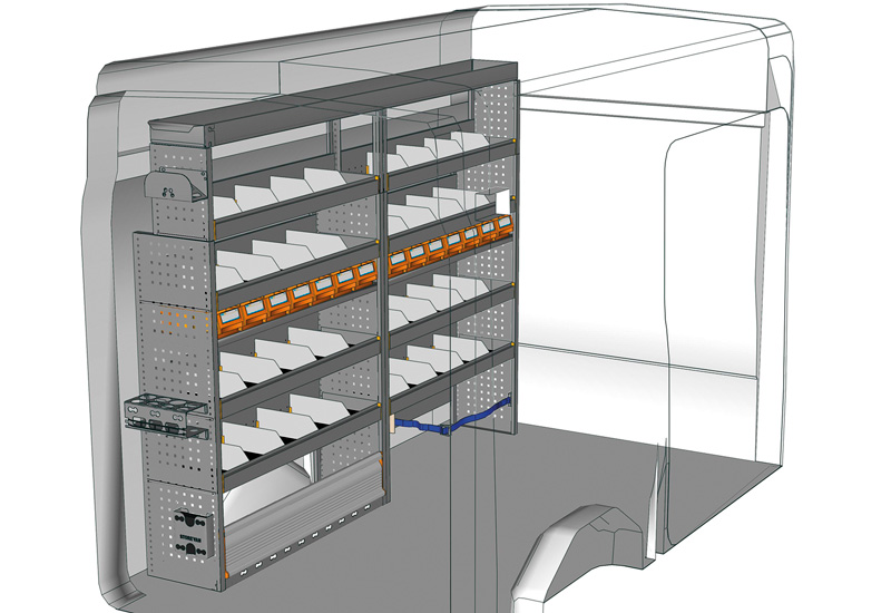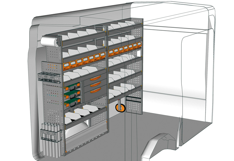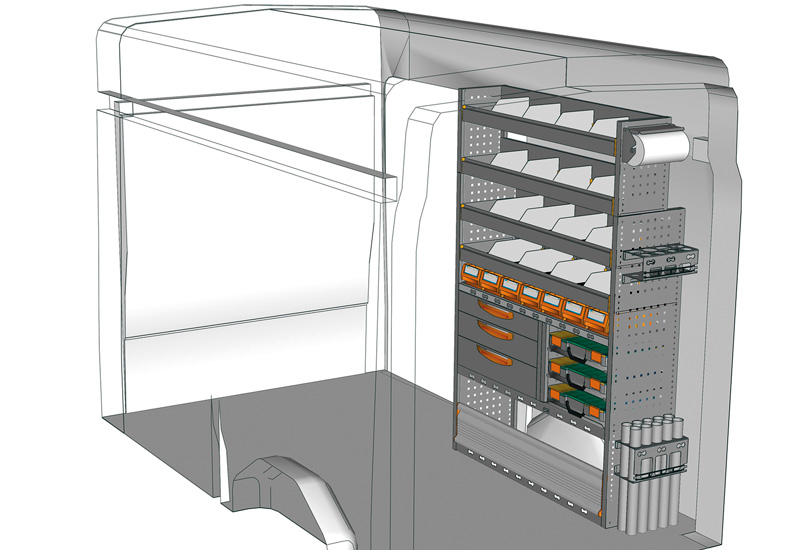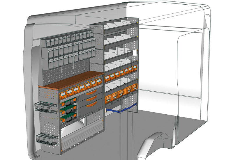 Wyposażenie samochodów dostawczych Transit L2 H3. Przedstawiamy tutaj przykłady wyposażenia do samochodów dostawczych Ford Transit (Rozstaw osi 3300 mm)