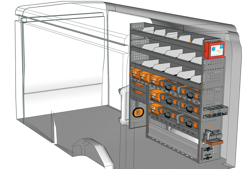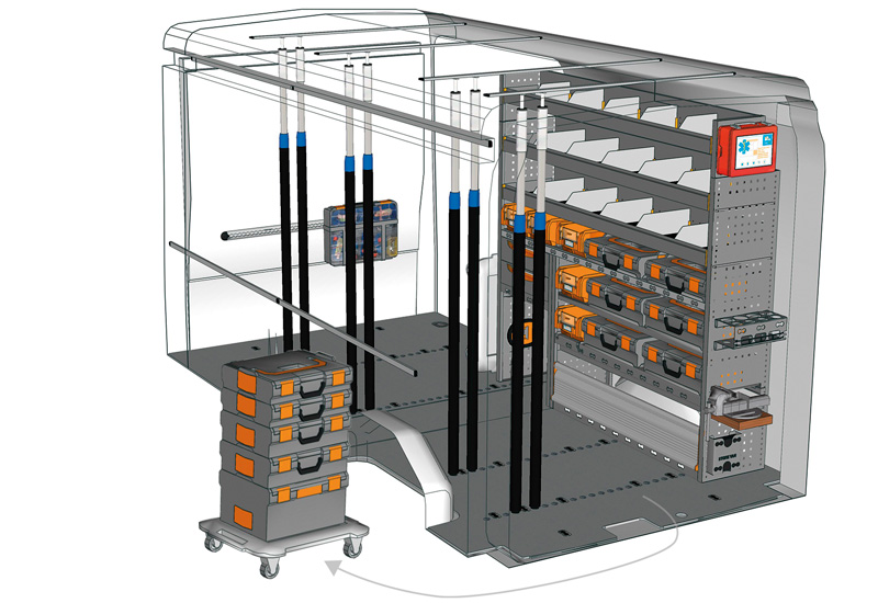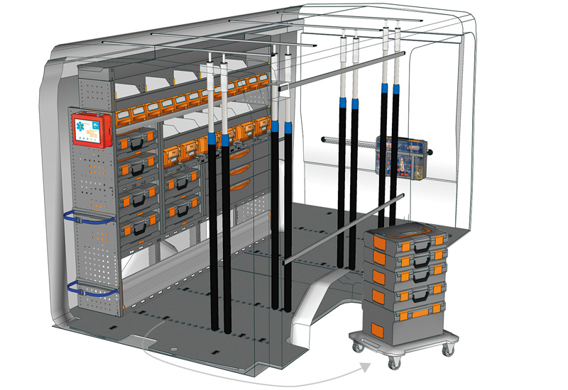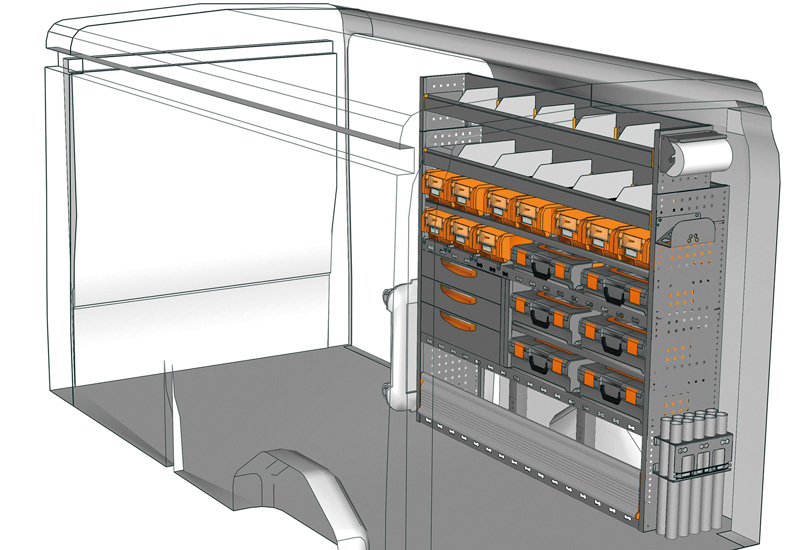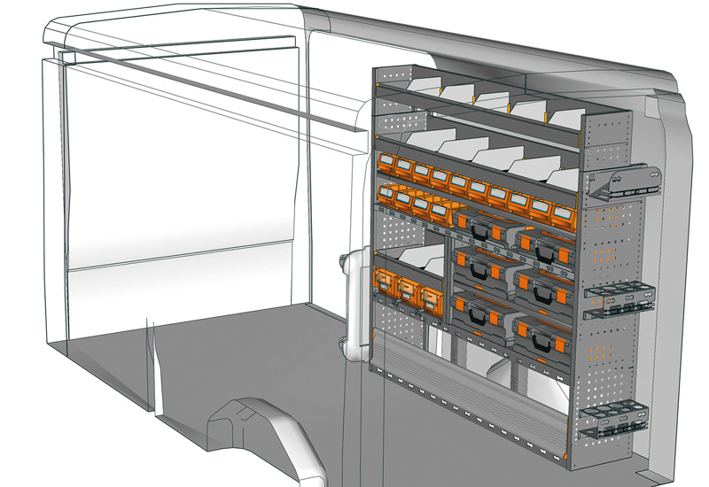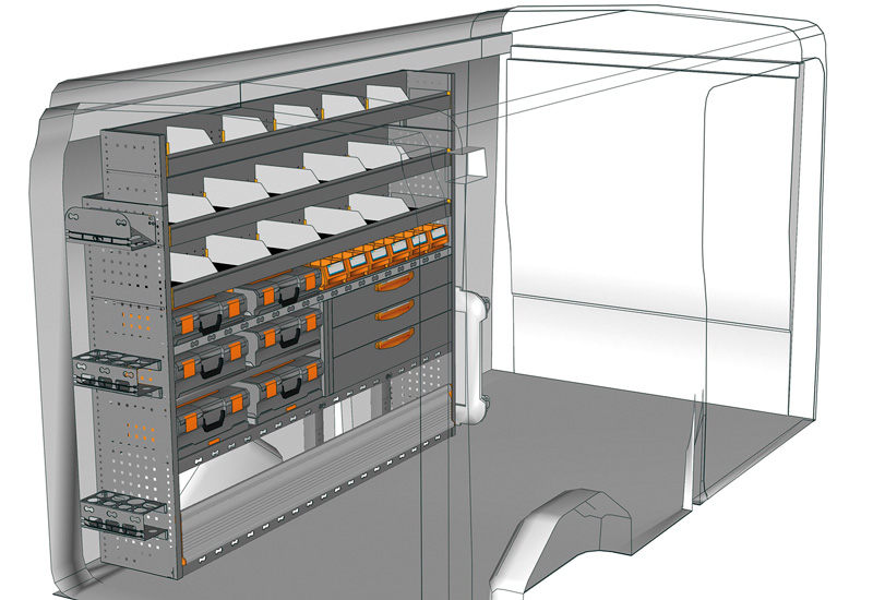 Przykłady regałów do samochodów dostawczych Mobile, do Transit L3 H2