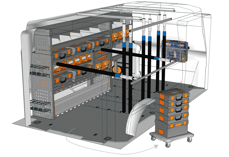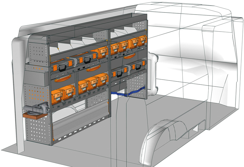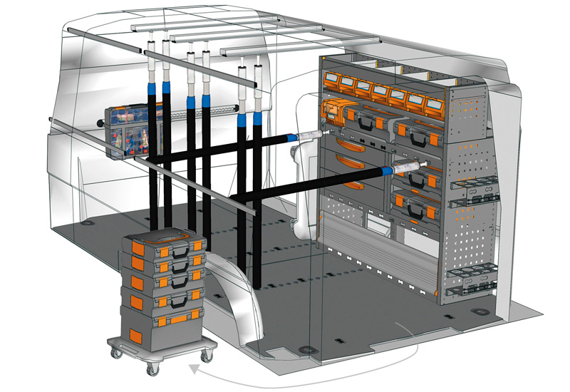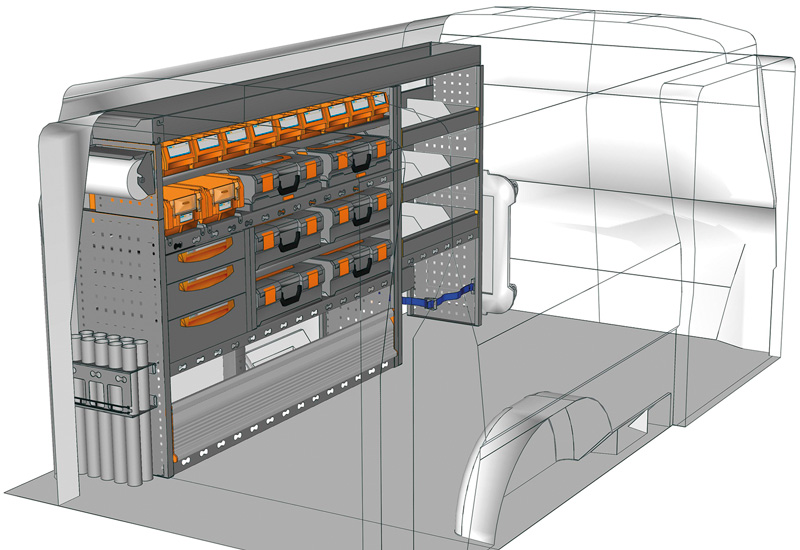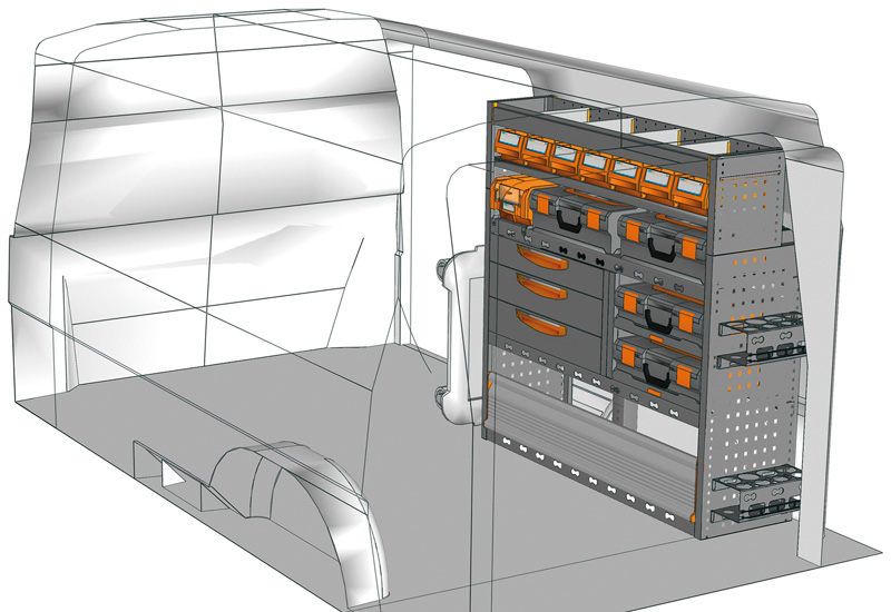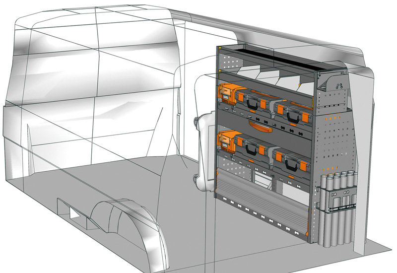 Przykłady regałów do samochodów dostawczych Mobile, do Transporter L2 H1