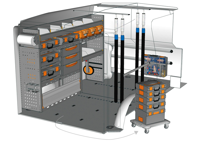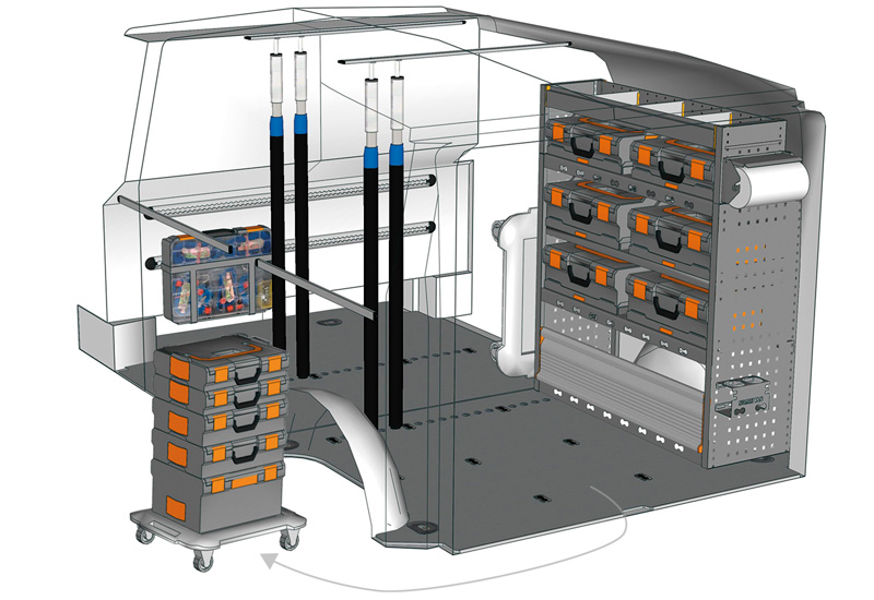 Przykłady regałów do samochodów dostawczych Mobile, do Vito L1 H1