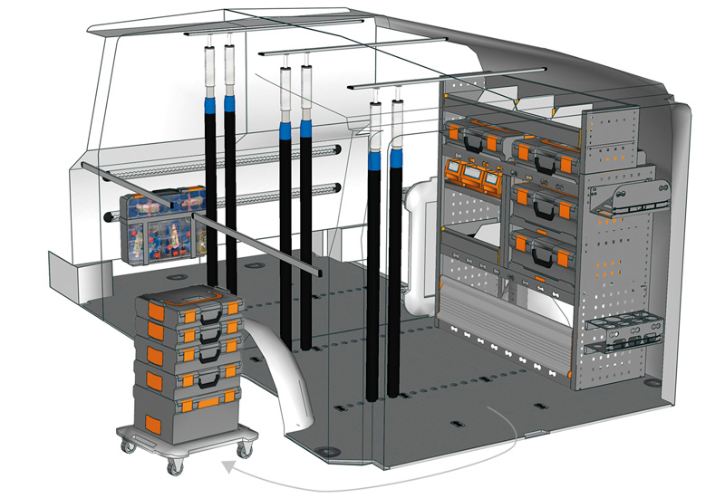 Przykłady regałów do samochodów dostawczych Mobile, do Vito L1L H1